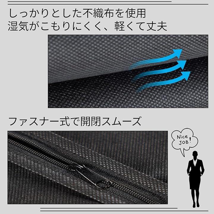 「素材と安心設計」 通気性に優れた不織布を使用しており、湿気によるカビや嫌な臭いを防止。