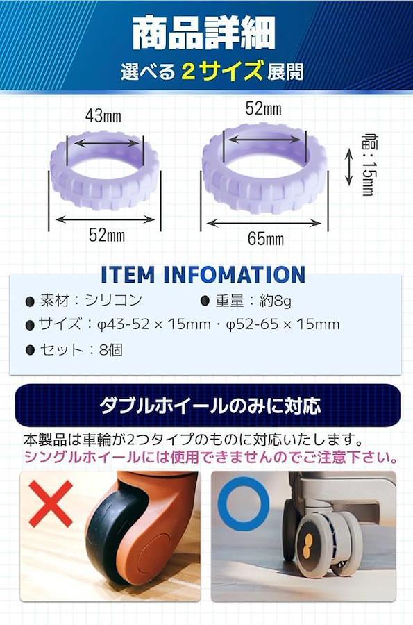 「商品詳細」素材:シリコン重量:約8g/サイズ:φ43-52 x 15mm・φ52-65 x 15mm/セット:8個/