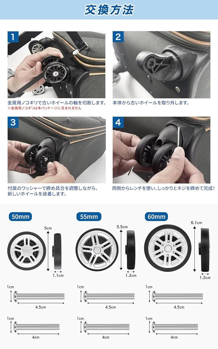 大切な旅行や出張を快適にするために、ぜひこの交換用ホイールをお試しください。