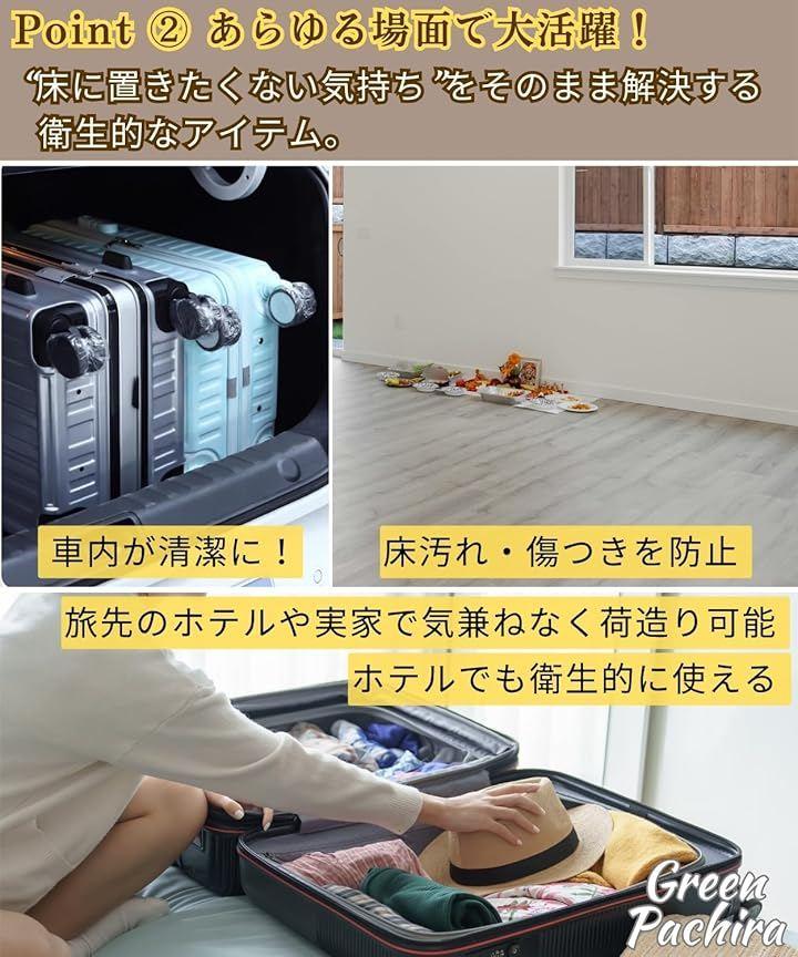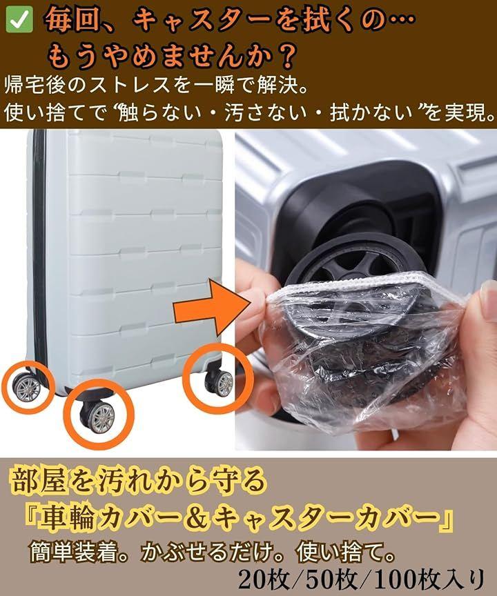 「もう汚れを気にしない、安心の清潔収納」 外出先から帰ったあと、スーツケースやキャリーケースの車輪&キャスターについた汚れを拭くストレスや家事から解放。