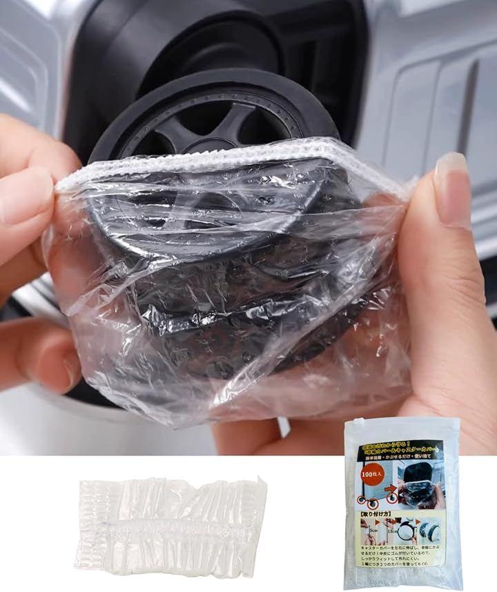 「簡単装着・伸縮フィットで清潔を守る車輪カバー」 ゴム入り伸縮素材でスーツケースやキャリーケースの車輪&キャスターにぴったりフィットするキャスターカバーです。