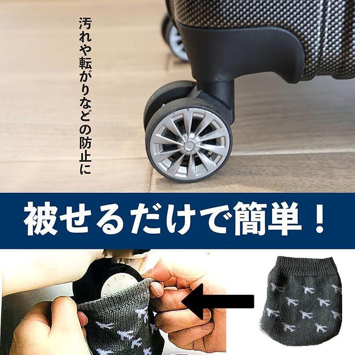 「スーツケース用 車輪ソックス」は、スーツケースのキャスターを保護し、汚れや傷から守るための便利なアイテムです。