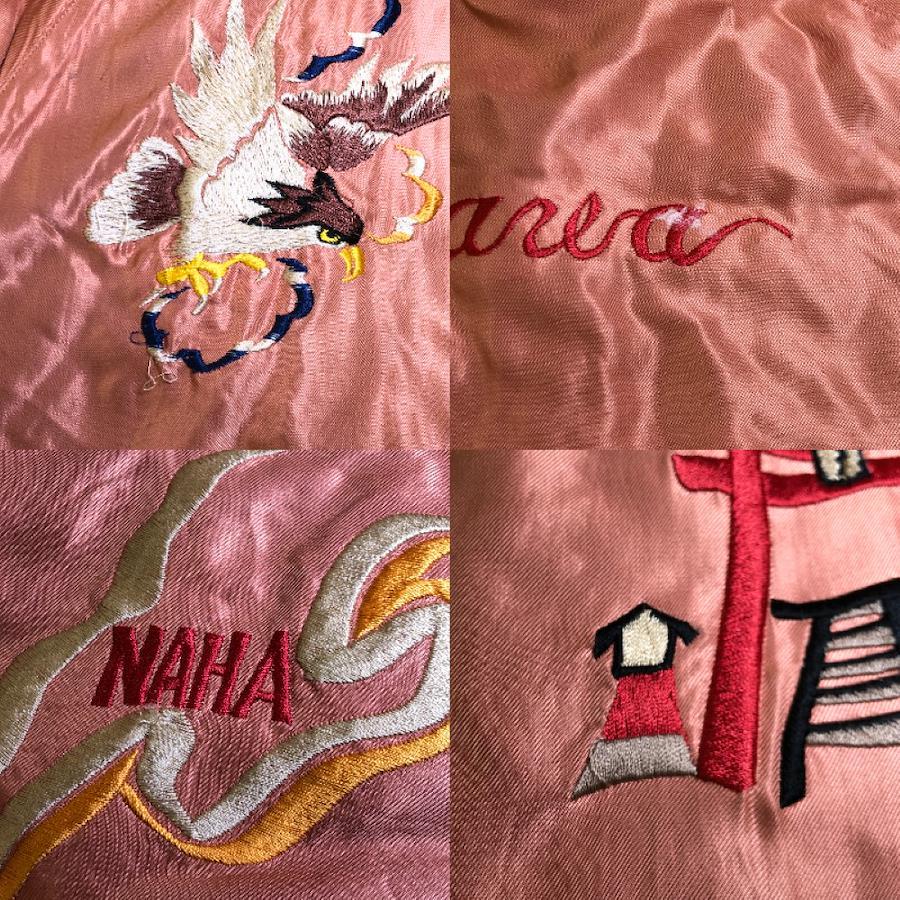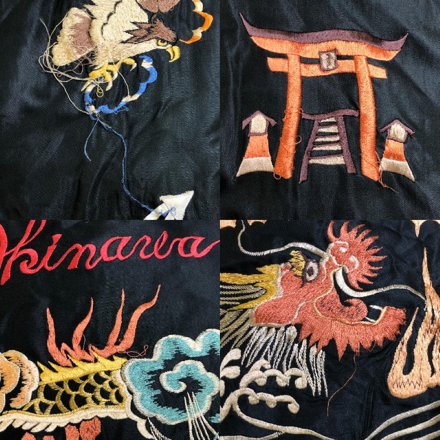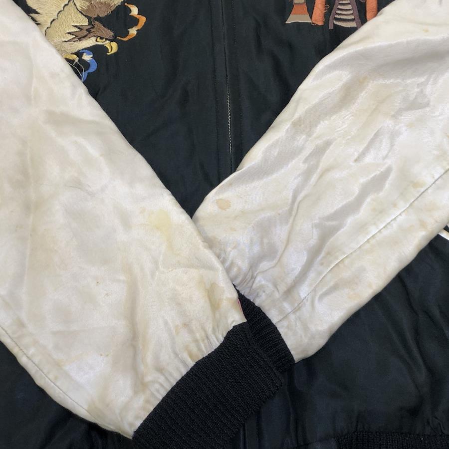 全体的にシミ汚れや刺繍のほつれなどのダメージが見られます。