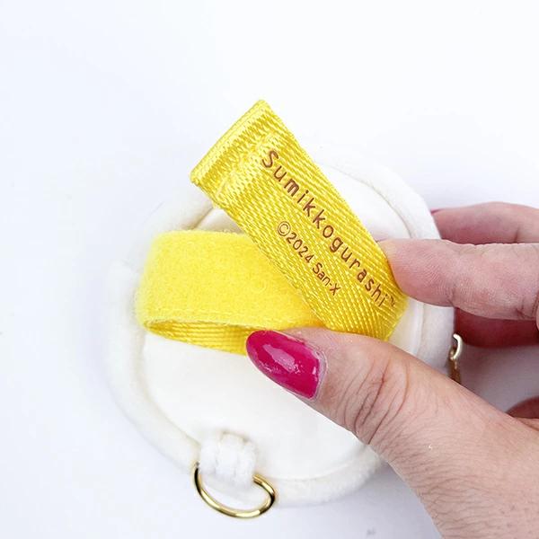 すみっコぐらし(ねこ)のベルトポーチです。巻き付けるだけで簡単取り付け。マスコットの向きも変えられます!リュックやスマホショルダーなどに付けて一緒にお出かけしよう♪