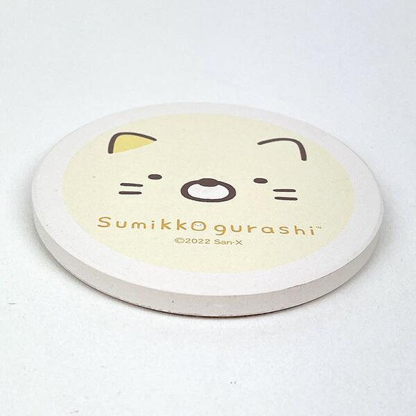 人気アニメすみっコぐらしの陶製吸水コースター。コースターを使うことによってガラスからの結露でテーブルが濡れずにすみます!しろくま・とかげ・とんかつ・ねこ・ぺんぎん?など、その時の気分で使い分けてもいいかもしれません♪裏面はコルク仕様になっているので滑りにくいです♪