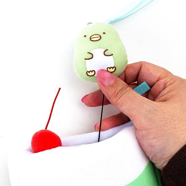 クリームソーダになったぺんぎん?のパスケースです♪ファスナーがついていて、中にはカードを入れるポケットや鍵をつけられるフックがついています。ぺんぎん?を引っ張るとリールになっているので便利です♪◆サイズ:13cm×13cm×5cm