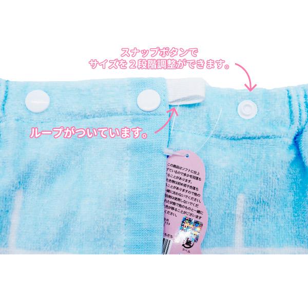 ウエストは総ゴム仕様で、サイズ調節用のスナップボタンも付いています。