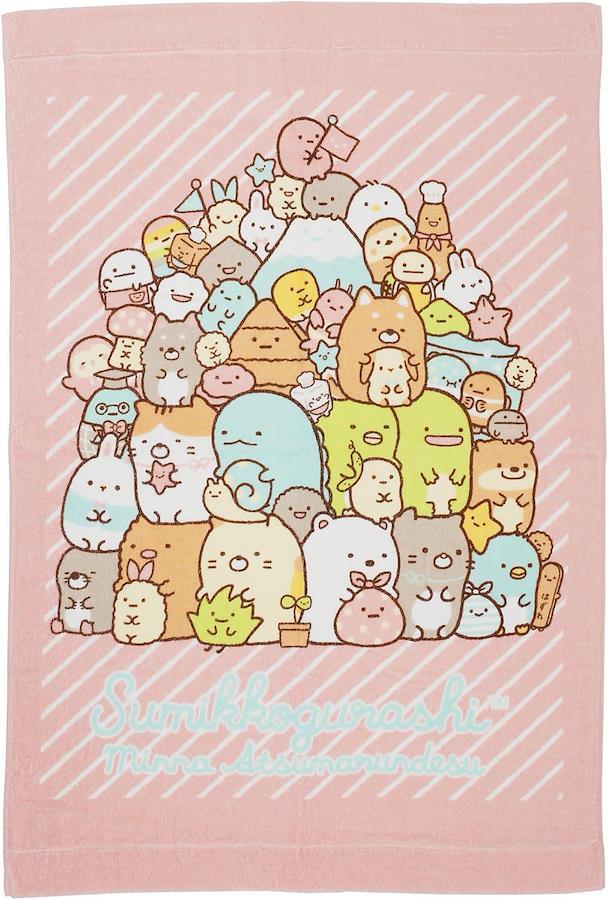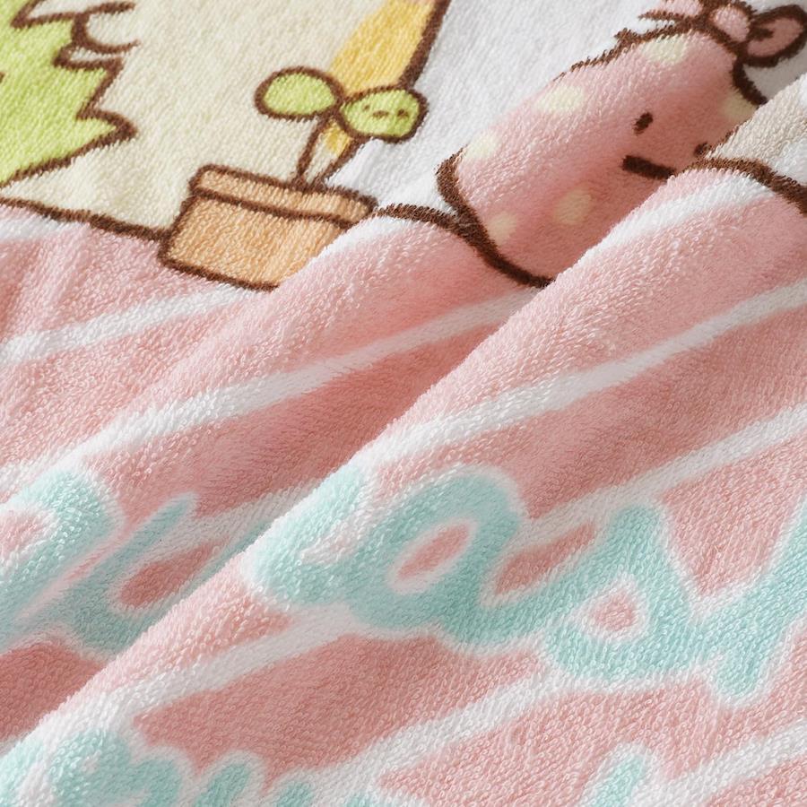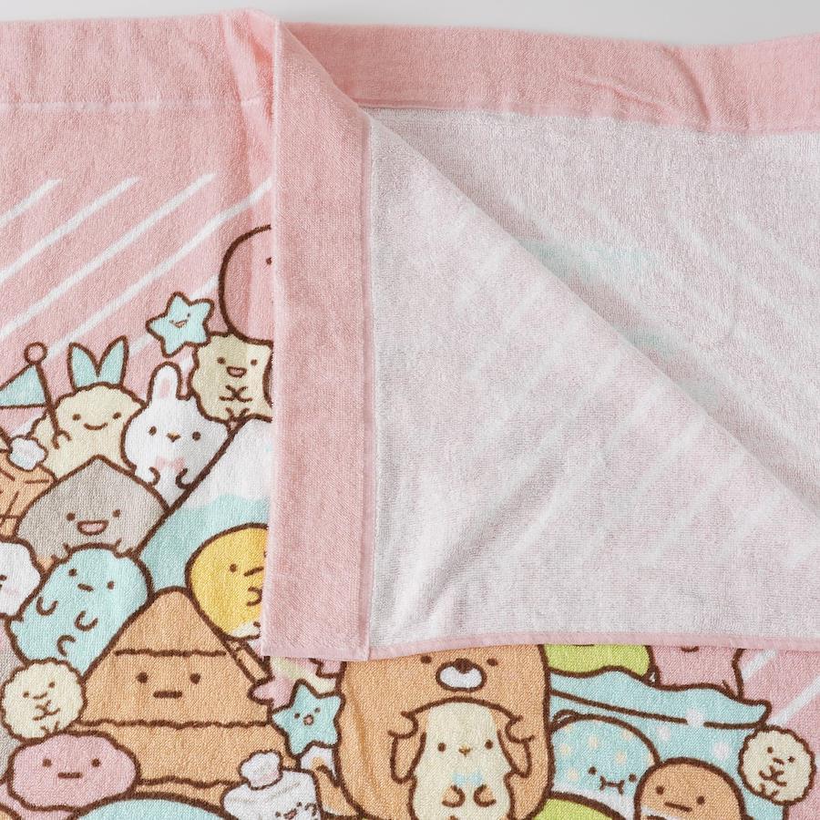 すみっコたちがぎゅっと集まった、見ているだけで癒されるデザインが魅力。やわらかい色味なので、お子さまの寝室や保育園でも使いやすいタオルケットです。