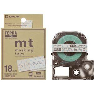 【出荷目安】:1 - 4営業日 ※土日・祝除く 【同梱区分】:TS 1 【梱包サイズ】:通常商品 【メーカー名】キングジム 【型番】SPJ18BB 【ご注意事項】 ・この商品は下記内容×5セットでお届けします。 ●和紙独自の素材感。 ●ショップの装飾や個人使用に好適。 テープ種類:マスキングテープ「mt」ラベル テープ幅:18mm テープ長さ:5m テープ色:ドット・ペールブルー 文字色:グレー