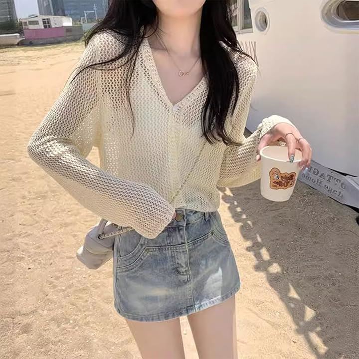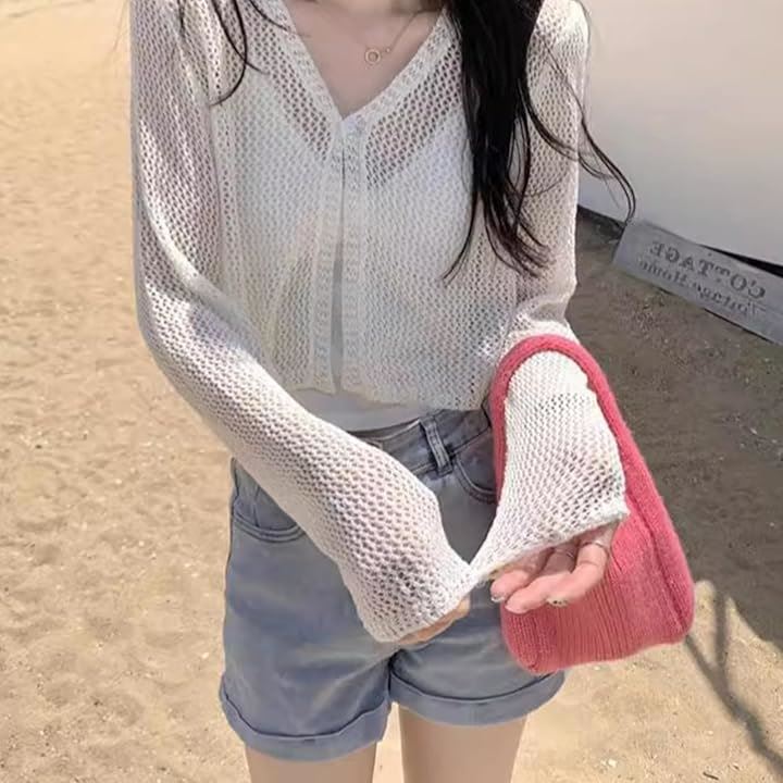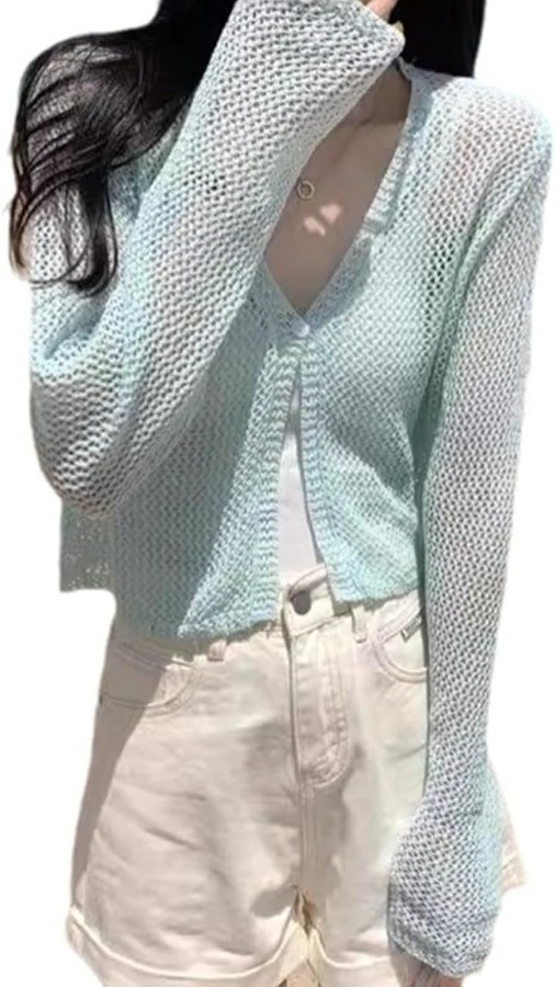 軽やかなメッシュ編みのサマーカーディガン。