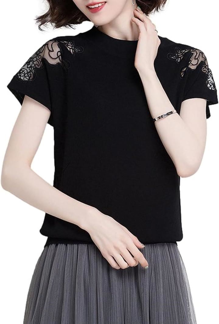 「大人の肌見せの最適解。繊細なレースディテール」 クルーネックのシンプルな半袖スタイルが、上品さと洗練感増すニットトップス。