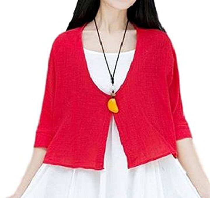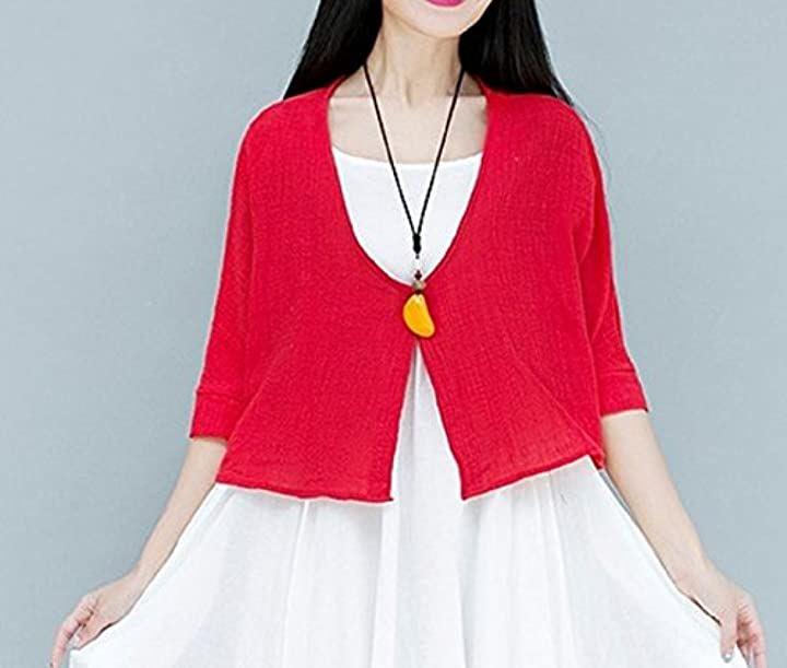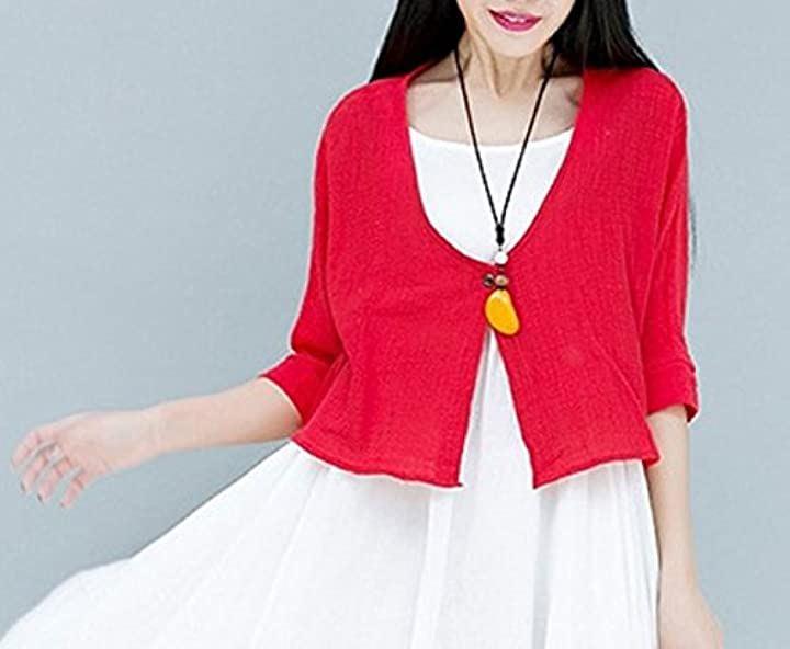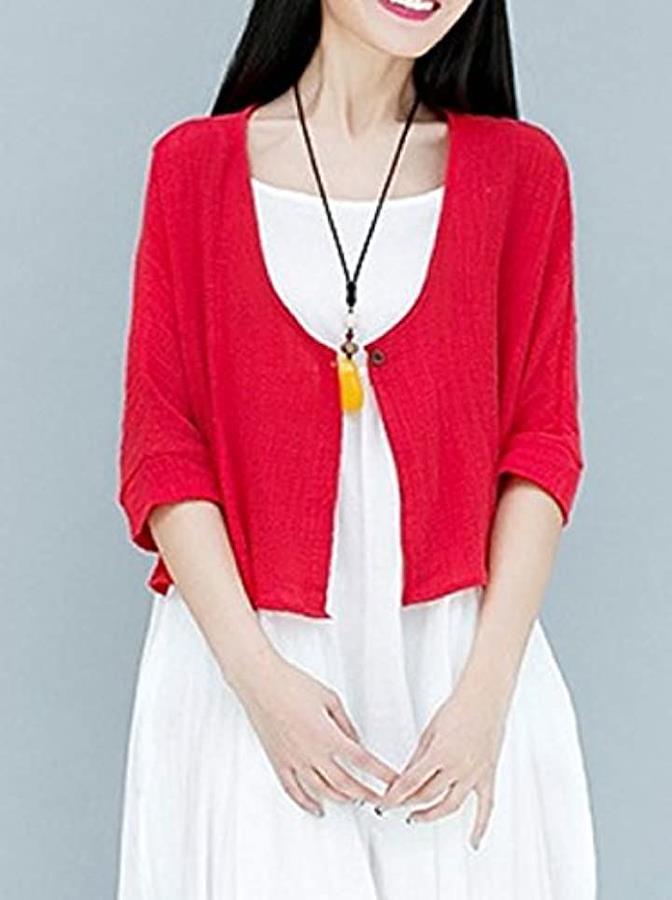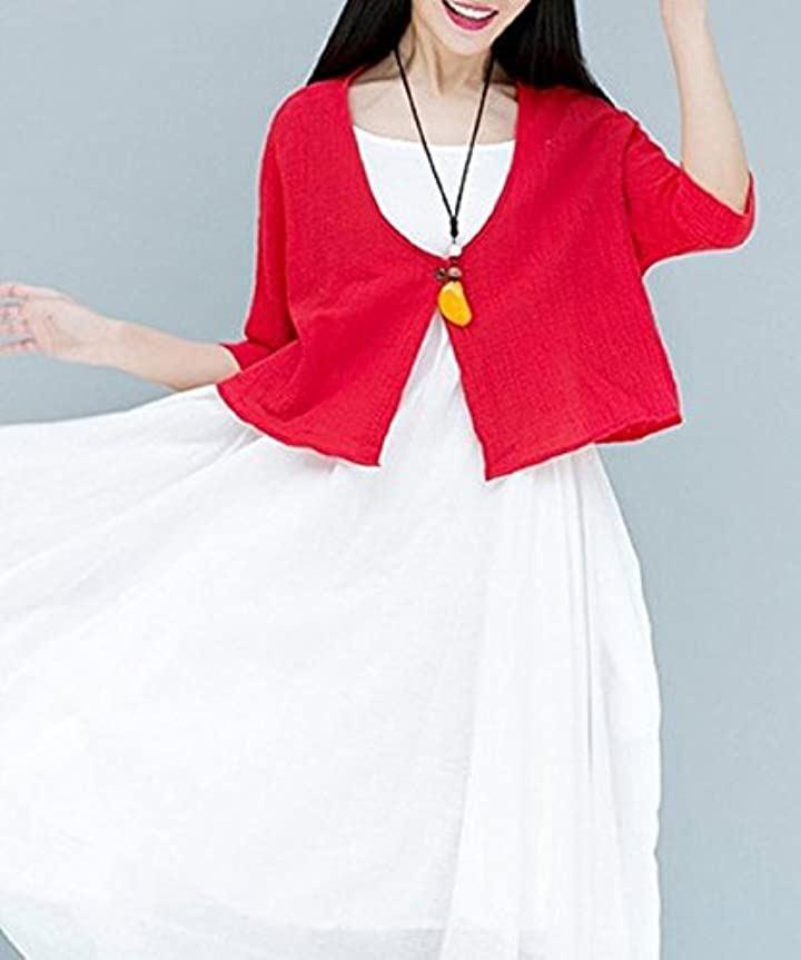 春 夏 秋 コットン uv 羽織 もの ボレロ カーディガン レディース綿素材を使用しているノーカラーボレロは、