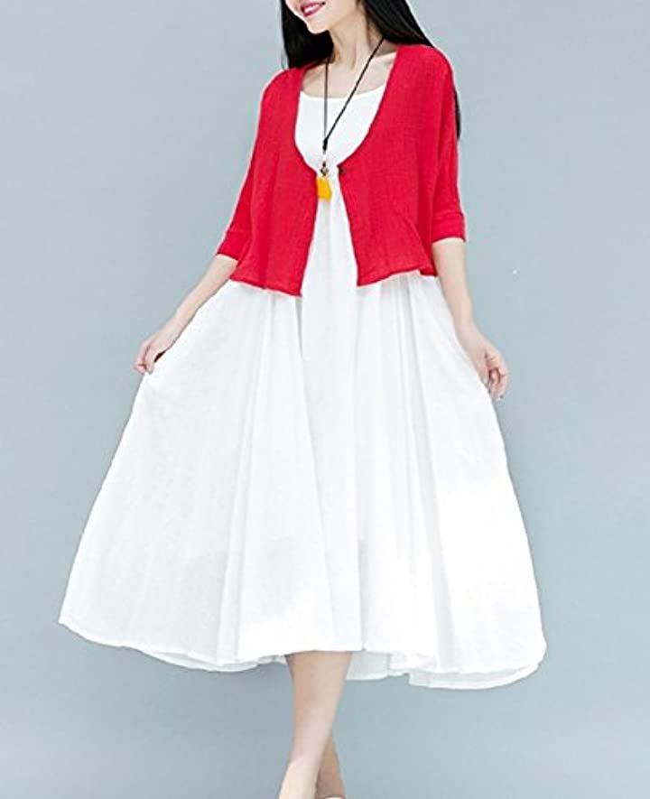 綿素材を使用しているノーカラーボレロは、さらりとした着心地の良い生地感で、軽やかで皺になりにくいのが嬉しいポイント。ノースリーブに又コーディネートのアクセントに。