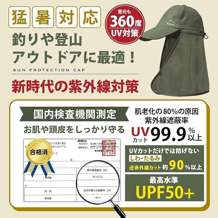 顔全体をしっかりガード: 顔全体を覆うタレ付きで、紫外線から顔を守ります。