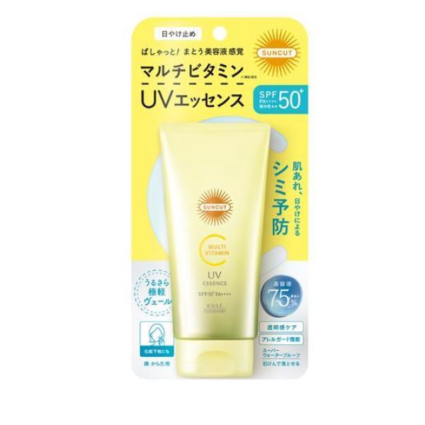製品の特徴●SUNCUT サンカット(R) マルチビタミンUVエッセンス●日やけ止め美容液●ぱしゃっと!まとう美容液感覚。うるさら極軽ヴェール。●日やけによるシミ・肌あれを防いで、未来の美肌を変えるマルチビタミンUVエッセンス。●マルチビタミン(保湿)配合。●水感のあるミストがピタッと密着し、毎日の紫外線から素肌をまもりぬきます。●すっきり爽やかクリアシトラスの香り。●SPF50+・PA++++(UV耐水性★★)●スーパーウォータープルーフ●石けんで落とせる●顔・からだ用●化粧下地にも●販売名:サンカット UVエッセンスV