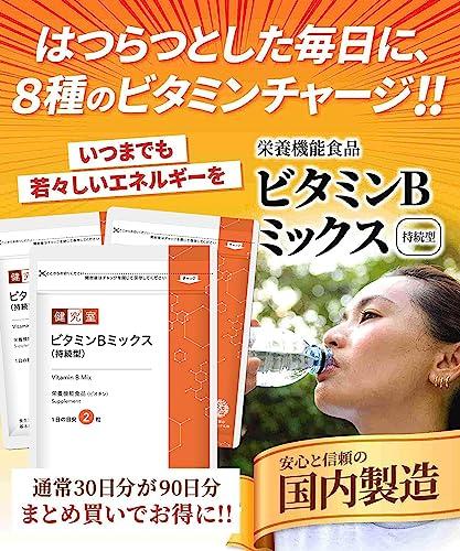 ?8種のビタミンB群をじっくり溶け出す持続型タブレットで効率補給、手軽にチャージ ?ビタミンB群は糖分やタンパク質などあらゆる種類の酵素の働きを助ける、私たちの体に欠かせないビタミンです。エネルギーにも大切なビタミンで、毎日の元気や若々しさのサポートにも役立ちます。 ?こんな方におすすめ:「食事のバランスが気になる」「疲れやすくなったと感じる」「激しい運動をすることが多い」 ?原材料:乳糖(アメリカ製造)、デキストリン/HPMC、セルロース、イノシトール、ビタミンB1、パントテン酸カルシウム、ビタミンB2、ナイアシン、ビタミンB6、ステアリン酸カルシウム、葉酸、ビオチン、ビタミンB12 ?国内製造で安全・安心。サンセリテのサプリメントはすべて国内GMP認定工場で製造しています。