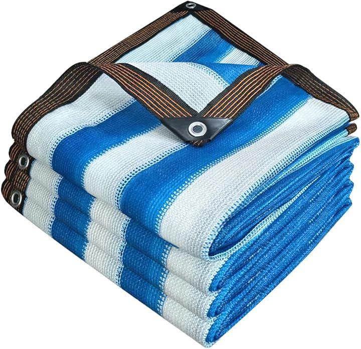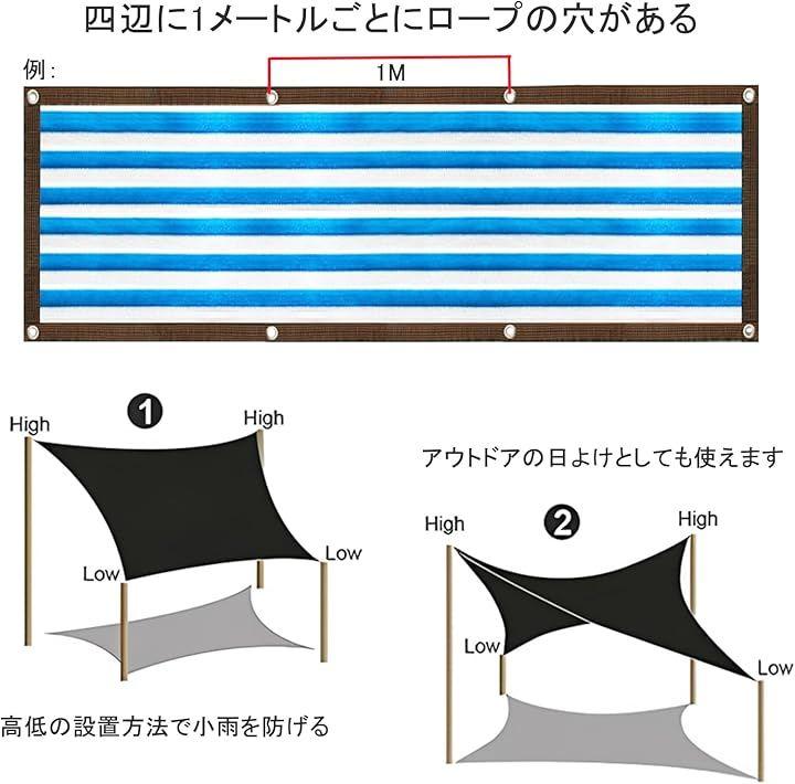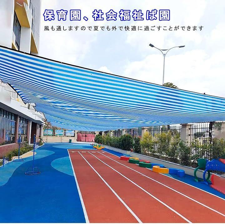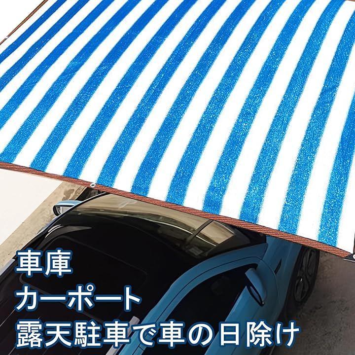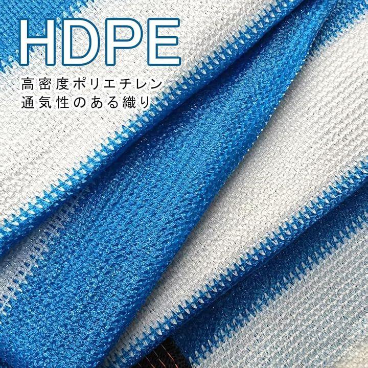 「青と白の遮光ネット」耐久性に優れ高密度なポリエチレンを使用した日よけシェードです。