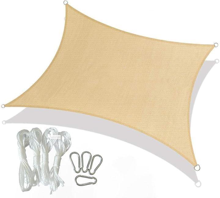 *仕様* 素材:185GSM高密度ポリエチレン(全新HDPE); カラー:ベージュ; パッケージ内容:(三角形)日除けシェードx1;ロープx3;金具x3;(四角形)日除けシェードx1;ロープx4;金具x4