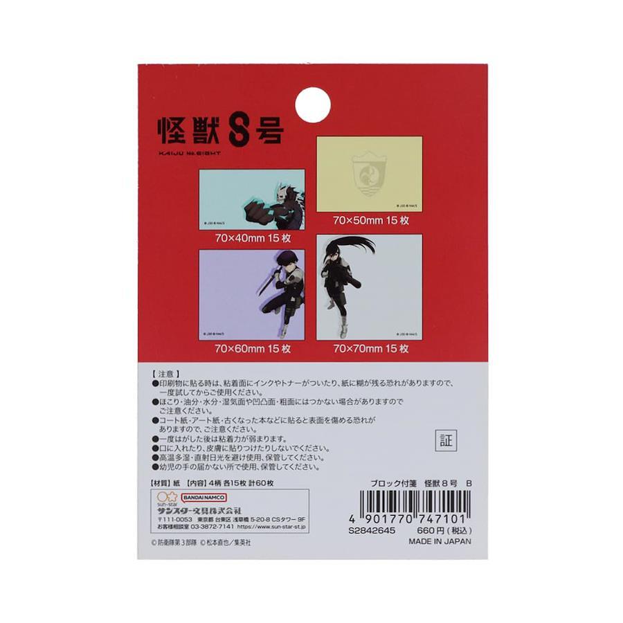 怪獣8号描き下ろしアート雑貨ブロック付箋好きな柄から選んで使える、[ブロック付箋]。 柄は、怪獣8号。 絵柄は、B柄。怪獣8号、サンスター文具だけの描き下ろしアートを使用した文具・雑貨登場!