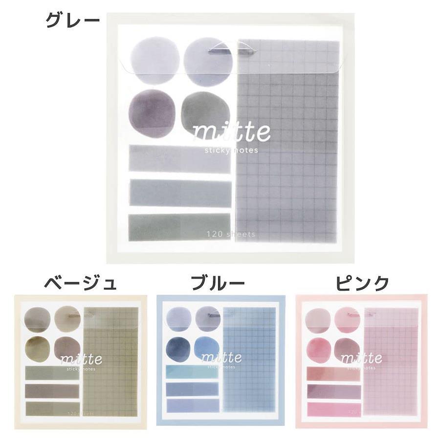 魅せる文具シリーズmitteクリアケース付箋 mittemitteにクリアケース付きの付箋が登場! 「クリアケース付箋 mitte」。 カラーは、ライトグレー。透け感のある付箋紙! 箔押しのワンポイントロゴ付き。同じカラーで揃えてかわいい「魅せる」がコンセプトのステーショナリーシリーズ。人気のくすみカラー4色展開。