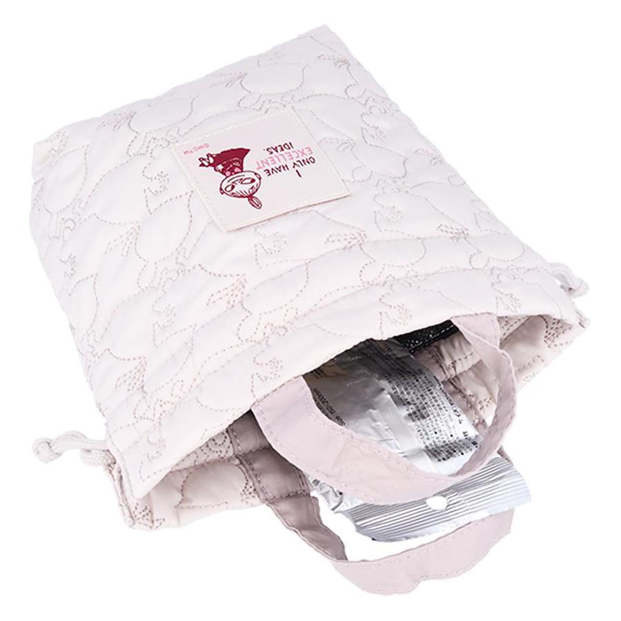 ムーミンたちのやさしさやポジティブな印象のセリフをピックアップしたデザイン【特長】汚れを拭き取りやすい裏地を採用したお菓子巾着ポーチ【仕様】中面に保冷剤が入るメッシュポケット付き【メッシュポケット内寸】幅約105×高さ約110mm【本体サイズ】200×180×70mm【材質】ポリエステル・綿【免責事項】メーカーによる商品リニューアルに伴いパッケージが変更が行われた場合、新パッケージでお届け致します事ご了承願います。