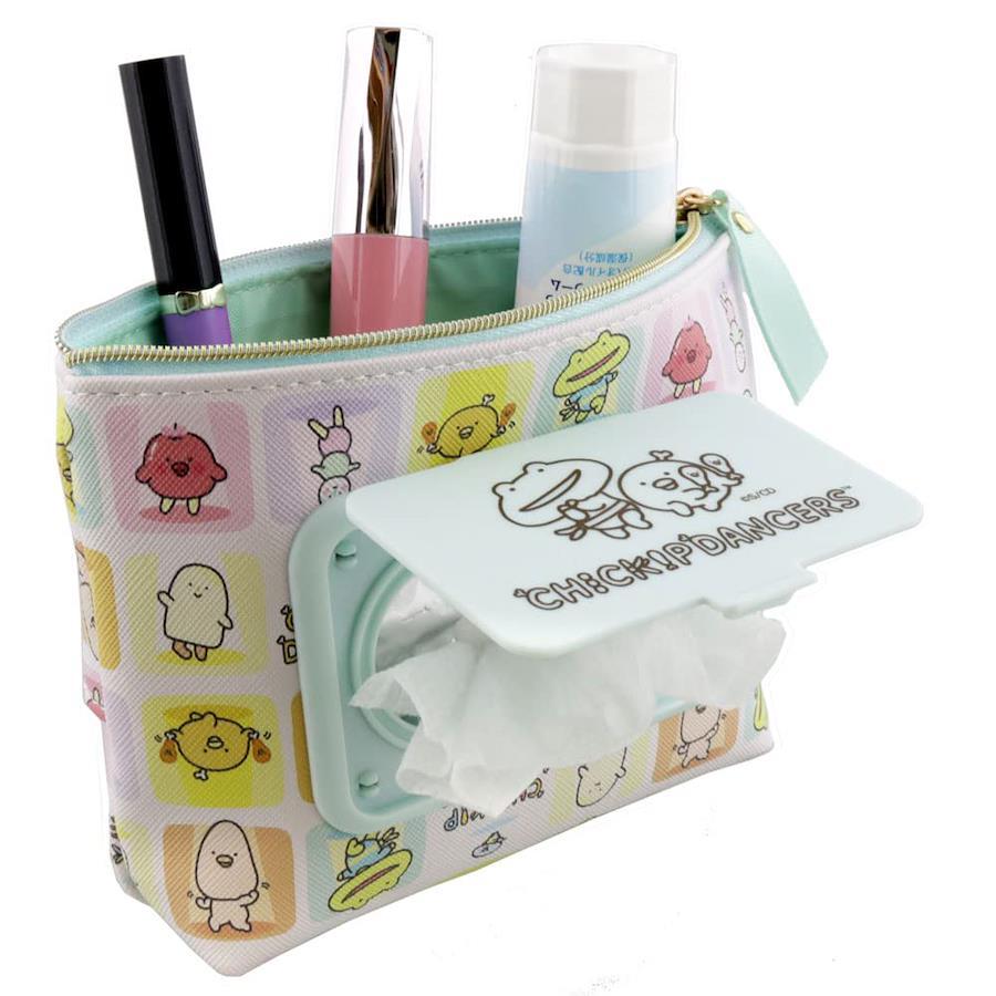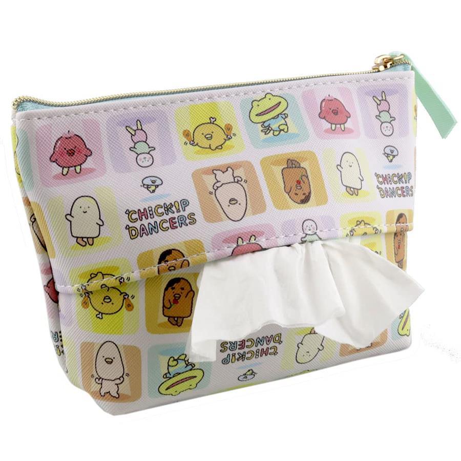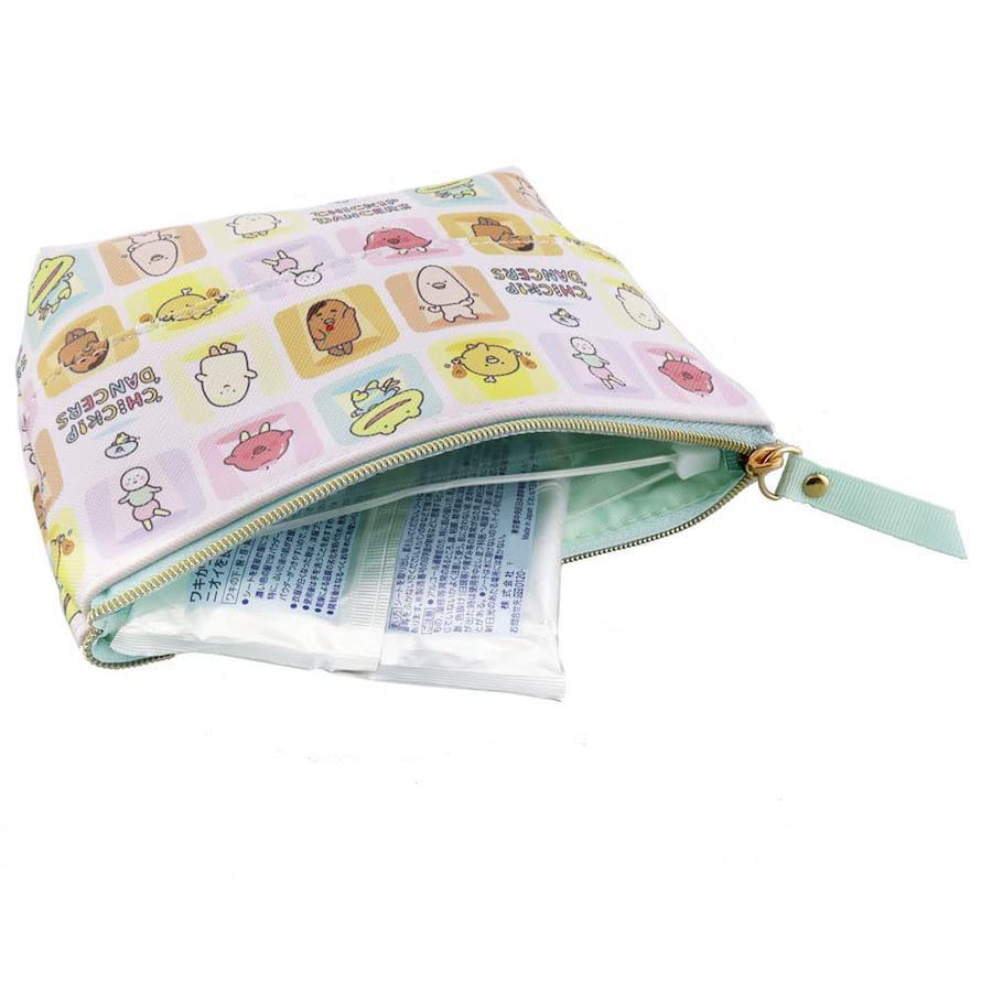 チキップダンサーズグッズ展開★seepo+シートケース+ポーチ+ティッシュが1つになった機能性ミニポーチ、seepo+(シーポプラス)。 柄は、「チキップダンサーズ」のキャラクター集合。シートの乾燥を防ぐ内袋がポーチの内部に組み込まれています。 最大10枚入りタイプのウェットシートが入ります。 ポケットティッシュを裏面に収納できます! サンエックス初の地上波全国放送アニメシリーズ、「チキップダンサーズ」! ダンスを踊る個性的なキャラクターたちが大活躍♪ 『ほねチキン×スキップ×ステップ=チキップダンサーズ』 とあるおうちでくらしている ほねつきチキンの【ほねチキン】はにわ にすむカエル【スキップガエル先生】とであい、ダンスをおしえてもらうことに…。 ふしぎななかまたちと たのしいダンスのおはなしです。
