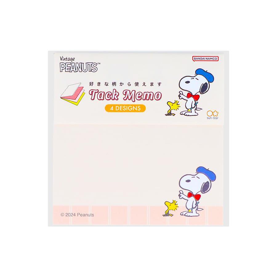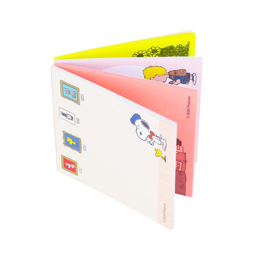 スヌーピーの[トラベル]柄グッズ!付箋メモ4種類あるデザインの好きな柄から使える大人気のブロック型の付箋です。鮮やかな蛍光色やシンプルで使いやすいパステルカラーなど4種類の柄が1冊になったブロック付箋です。正方形でちょっとしたメッセージなどに使いやすい大きさです。