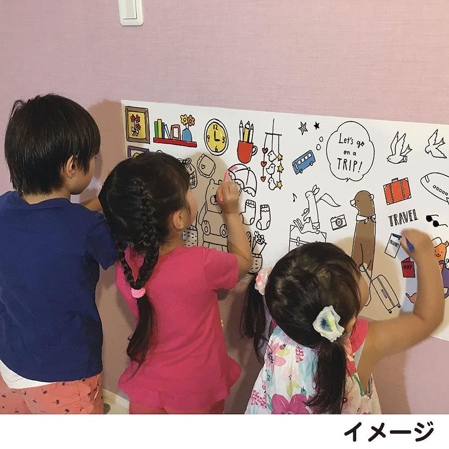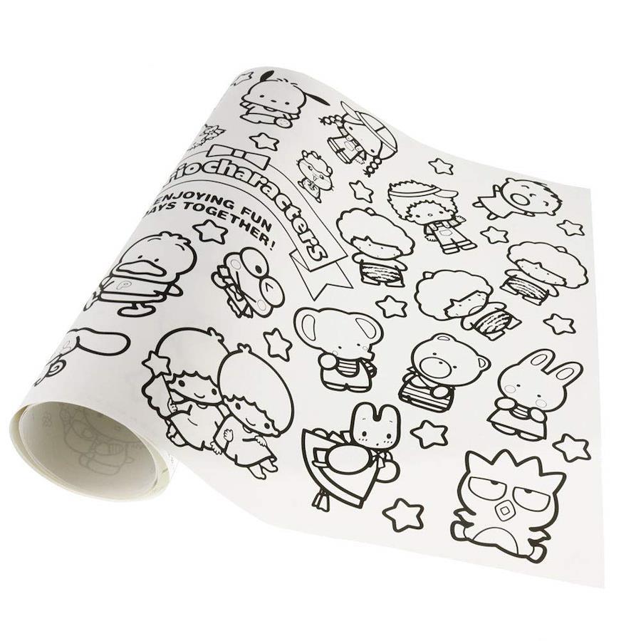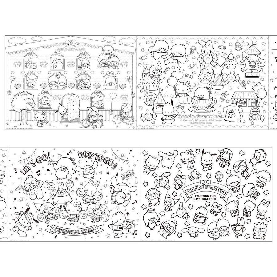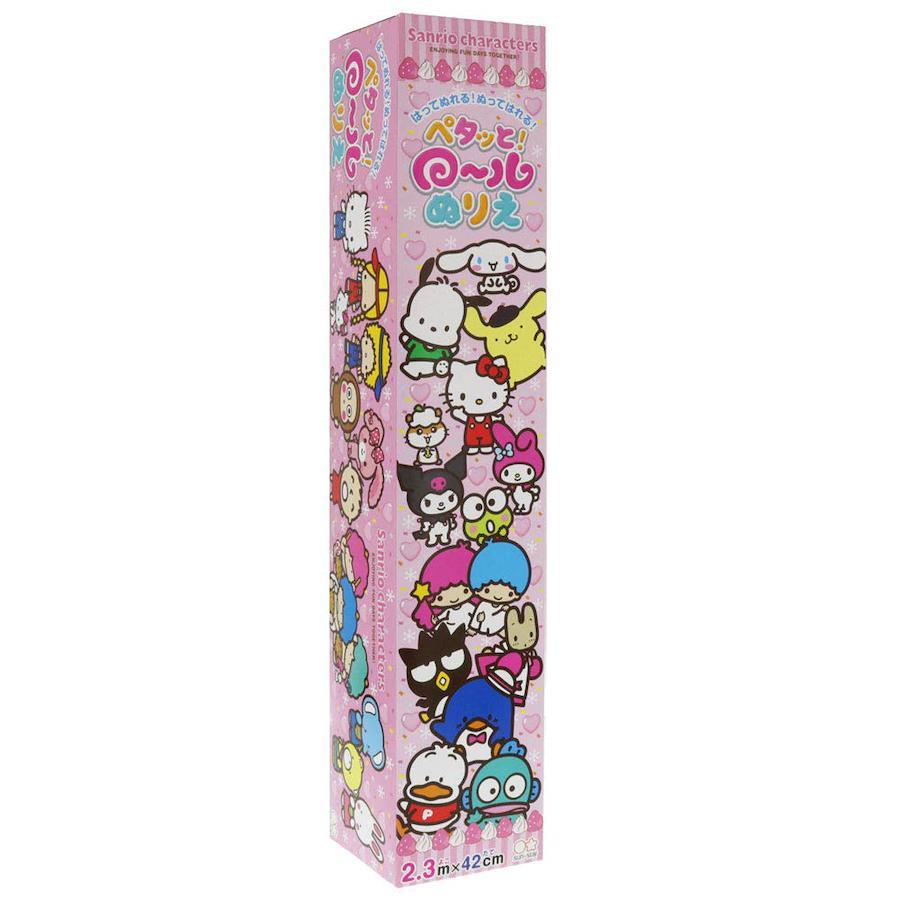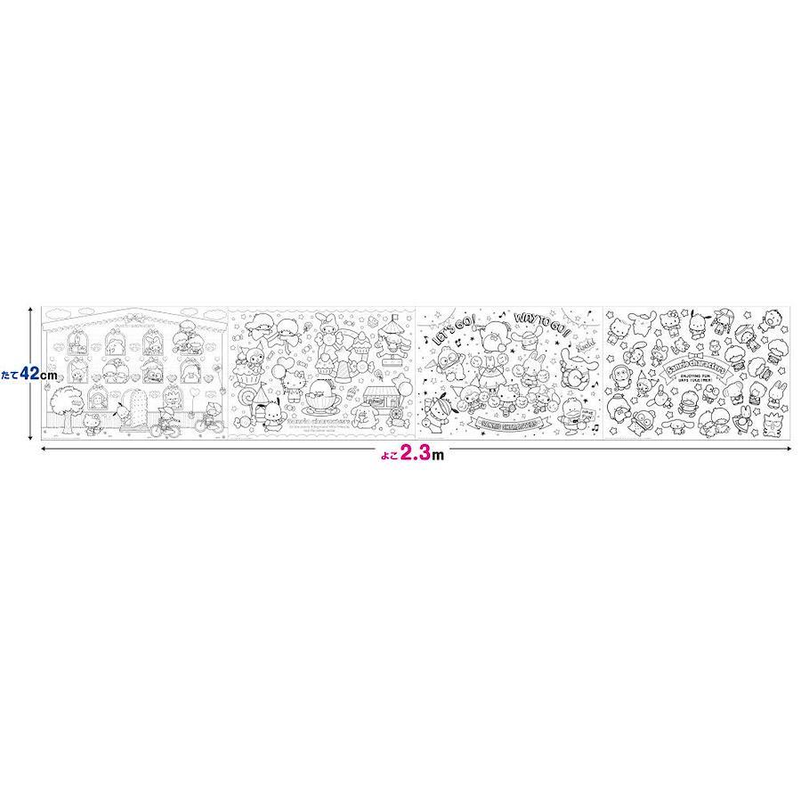 はってぬれる! ぬってはれる!全面弱粘着の糊残りしにくいぬりえシートです。テーブルや机、床に貼ってぬっても紙がずれません。ぬり終わったシートは壁に貼ってキレイに飾れます。1シート約63cmごとにミシン目が合ってきれいに切り取れます。よこ2.3メートル、たて42センチメートルのながーいぬりえです。