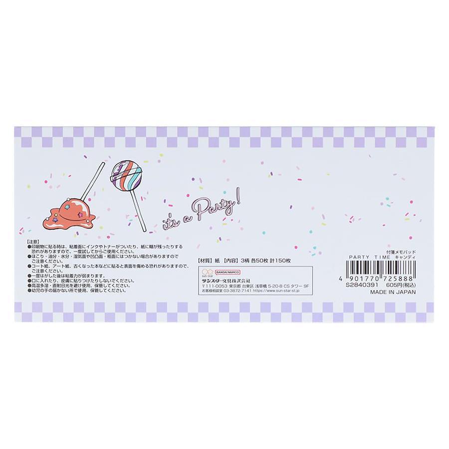 パーティー気分を楽しめる文具付箋メモパッド PARTY TIME3柄の付箋セット、「付箋メモパッド」。 PARTY TIMEシリーズのステーショナリーで、キャンディ柄。蛍光カラーがかわいいPARTY TIMEとは?スイーツにチョコスプレーを振りかけた、カラフルなデザインがキュート 持っているだけでパーティー気分を楽しめちゃうステーショナリーが出来上がりました