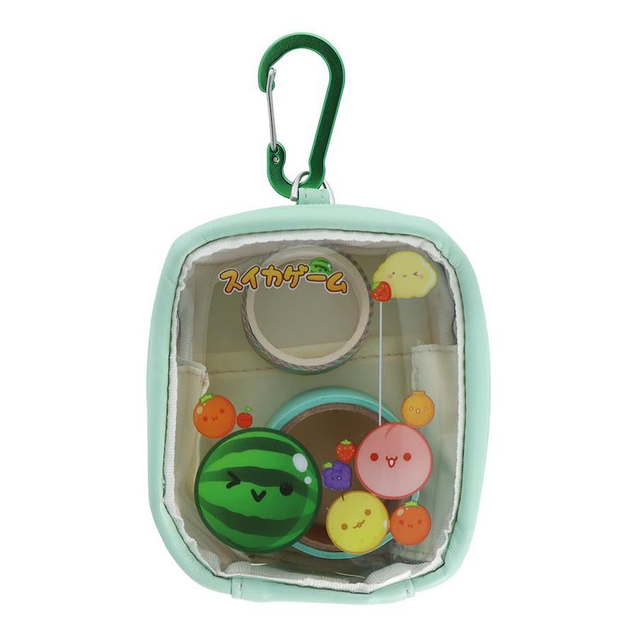 話題のスイカゲームグッズ登場!カラビナ付ミニポーチ小物を入れて持ち運べるクリア素材のカラビナ付きミニポーチです。黄色のカラビナがおしゃれ!もう少しでスイカができそうなシーンを再現したデザインのポーチです。小物を入れて持ち運ぶのに便利な大きさです。
