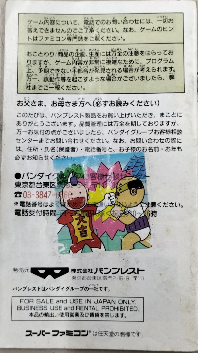 Super Famicom Software Go Go Ackman (Box Missing) BANPRESTO Super Famicom Software