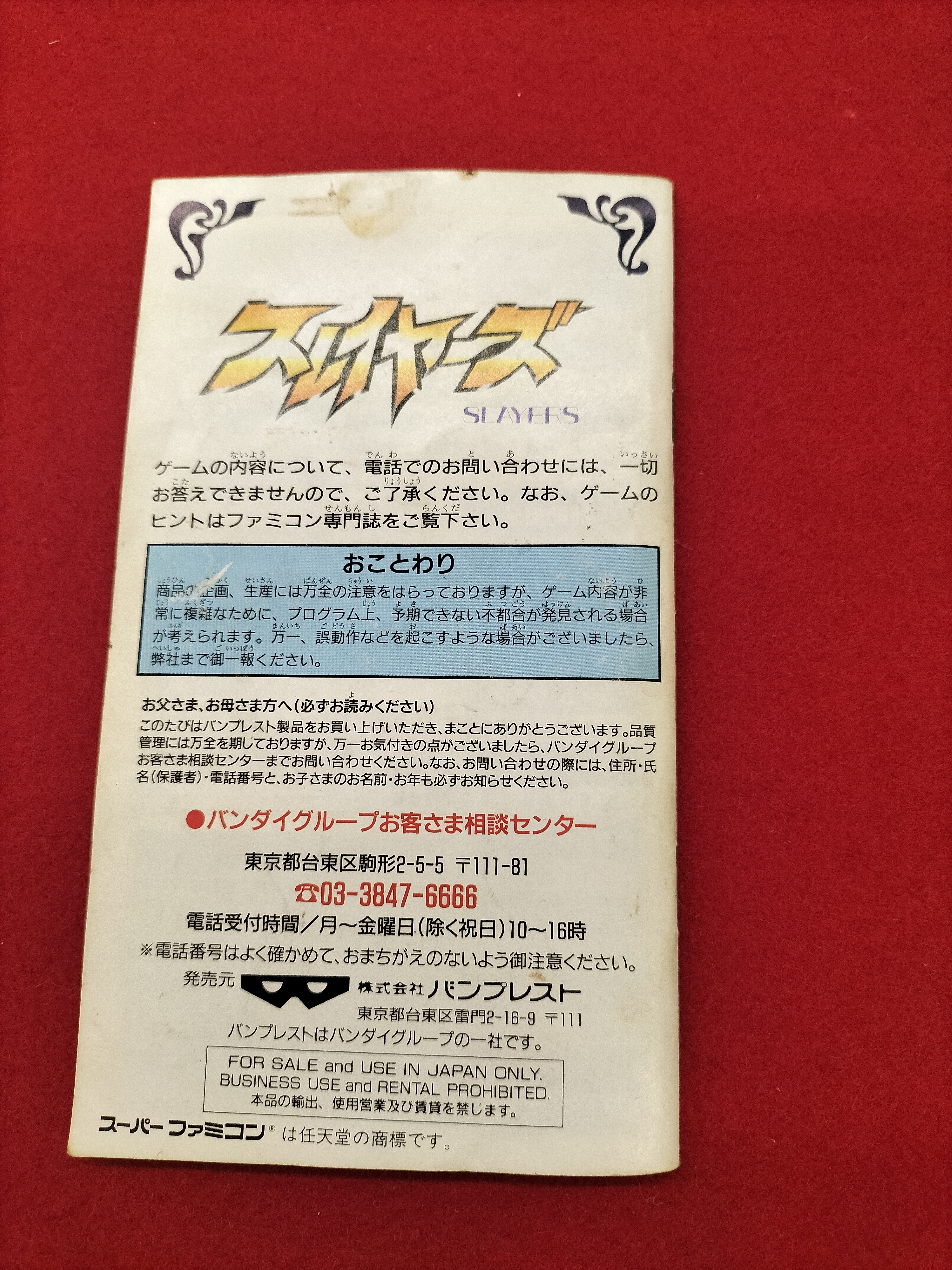 スーパーファミコンソフト スレイヤーズ BANPRESTO スーパーファミコンソフト BANPRESTOスレイヤーズスーパーファミコンソフト