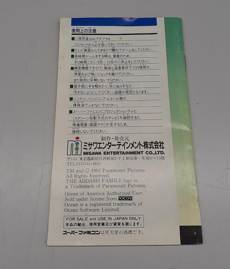スーパーファミコンソフト アダムス・ファミリー MISAWA スーパーファミコンソフト MISAWAアダムス・ファミリースーパーファミコンソフト