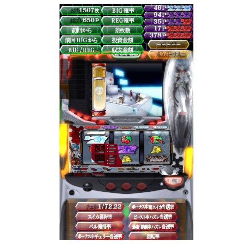 パチスロ「エヴァ」シリーズ第5弾「ヱヴァンゲリヲン~真実の翼~」 可能な限り忠実に再現した、パチスロシミュレーター登場!美麗な最新CG と新劇場版「序」「破」のクライマックスシーンをふんだんに使用した演出映像や上部に「綾波レイ」フィギュア、下部には「初号機」の役モノを配した専用筐体の細部まで再現!パチスロシミュレーターとして、実機を知り尽くすための各種モードを搭載!