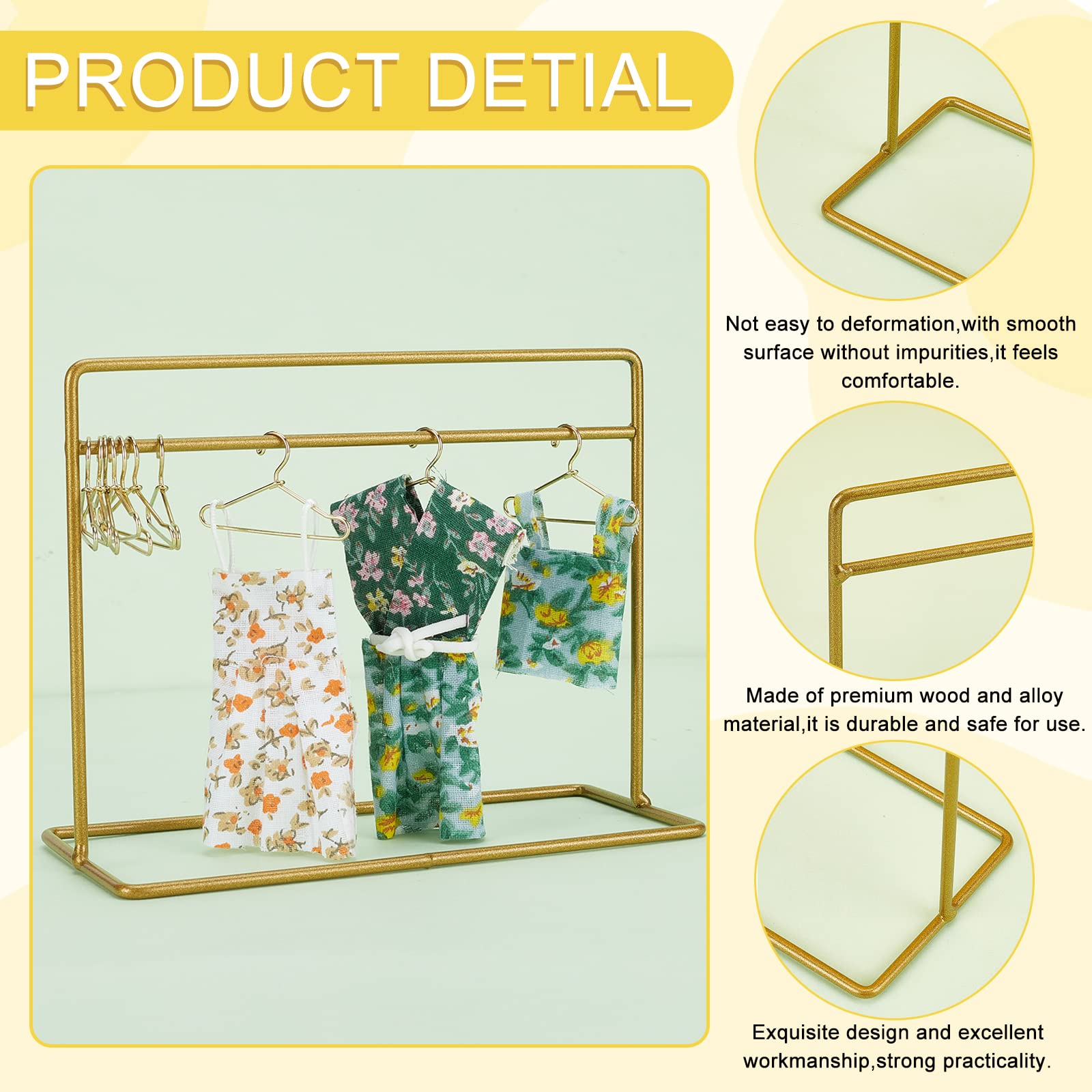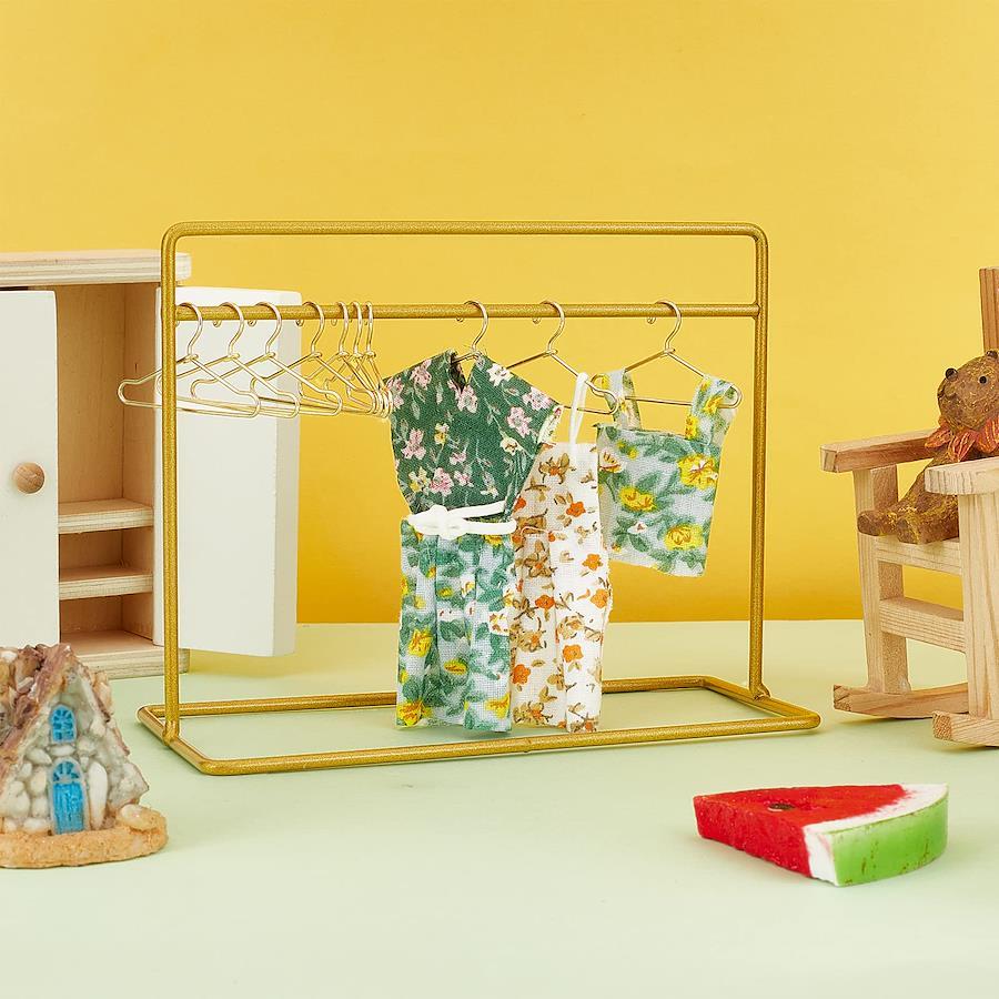 SUPERFINDINGS ゴルード 人形用 ハンガーラック 10個ハンガー付き ドールハウスメタル衣類ハンガー ドールガーメントラック BJDドール人形用ハンガーラック 152×71×120mm ドールハウス装飾用のドール家具アクセサリー 着せ替え モデル DIY 小物 雑貨 おもちゃ 部屋 ドール用 ドールハウス 装飾用 かわいい