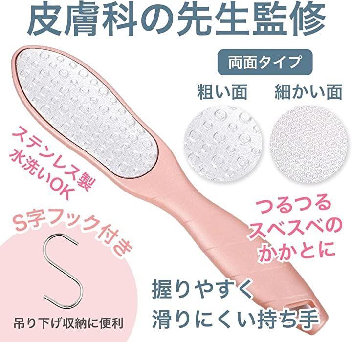 「両面タイプのかかと削り」「粗い面」は大きな突起で足の裏の頑固な角質もらくらく除去出来ます。