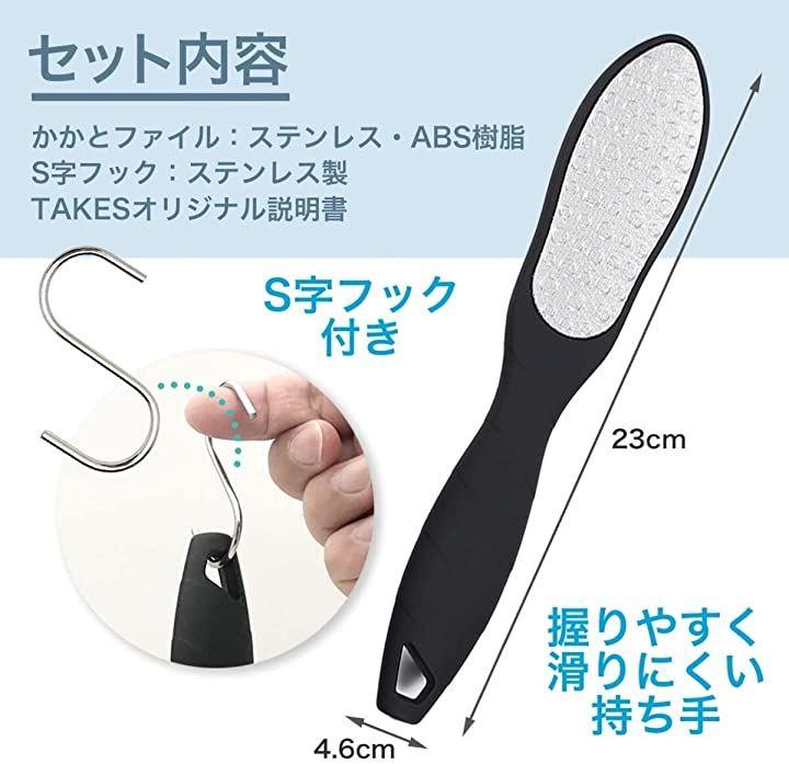 「セット内容」フットファイル(ブラック)x1(ステンレス、ABS樹脂)、S字フックx1(ステンレス製)、TAKESオリジナル説明書付き *ケガの原因となりますので、削り過ぎには十分注意してください。