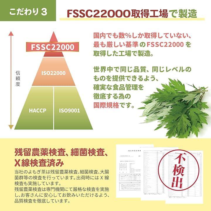 「徳島県産・国内製造」徳島県産100%のよもぎのみを使用し、日本国内で栽培から収穫、加工製造まで品質管理を徹底しています。