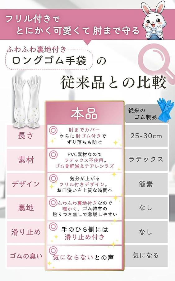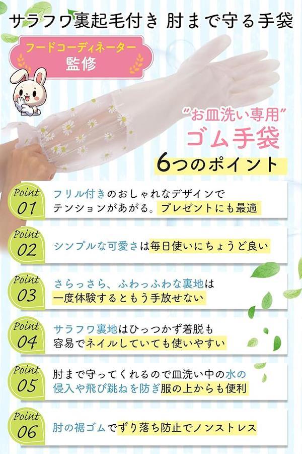 機能面では、手袋をつけることでお湯や洗剤による肌荒れを防ぎます。