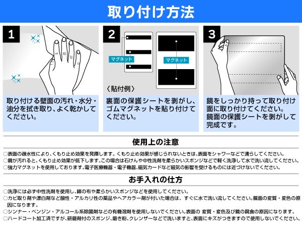 鏡本体と防水のゴムマグネットは分けて配送となります。