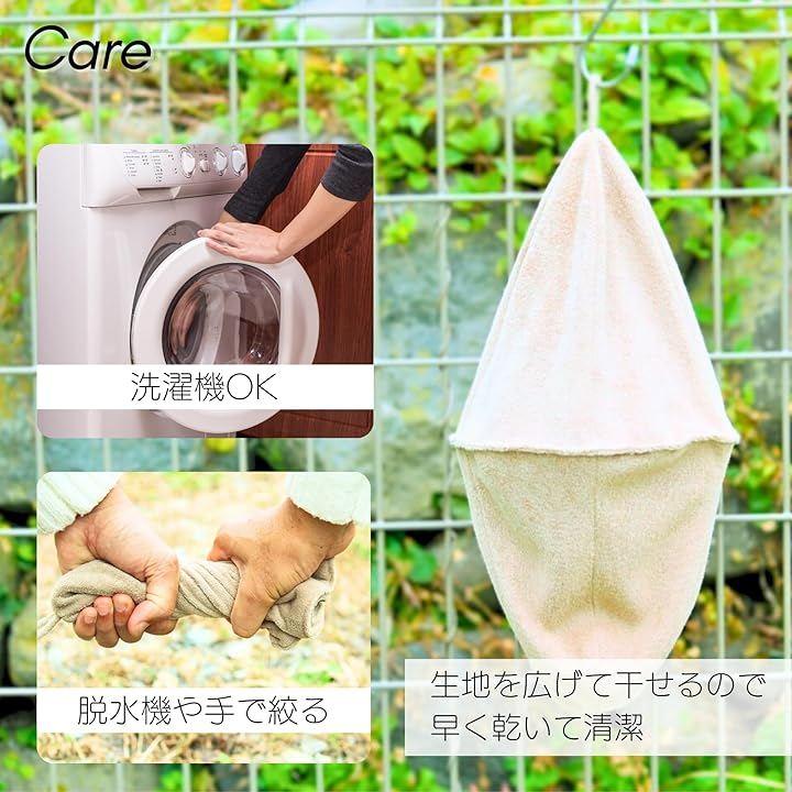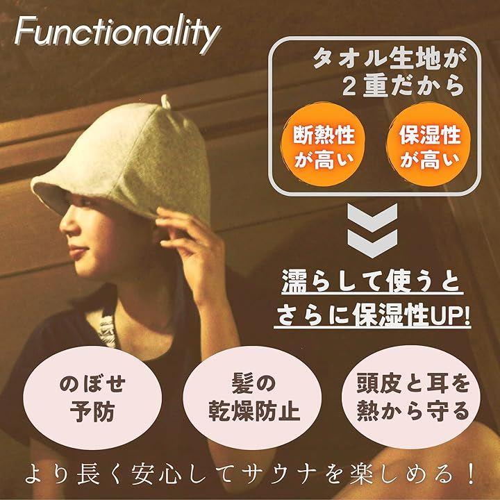 2枚重ねのタオル生地が乾燥と高温から髪をダメージから守り、のぼせ防止に効果的。