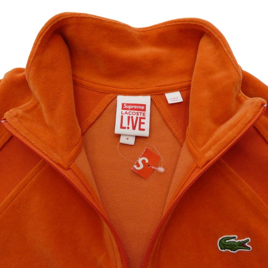 Supreme 18SS Lacoste Velour Half-Zip Track Top Jacket, Orange, Size M, [Excellent Condition], Men's [Used Clothing] [Pre-owned]