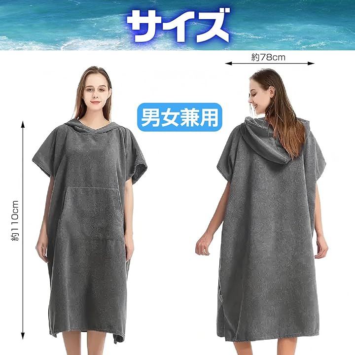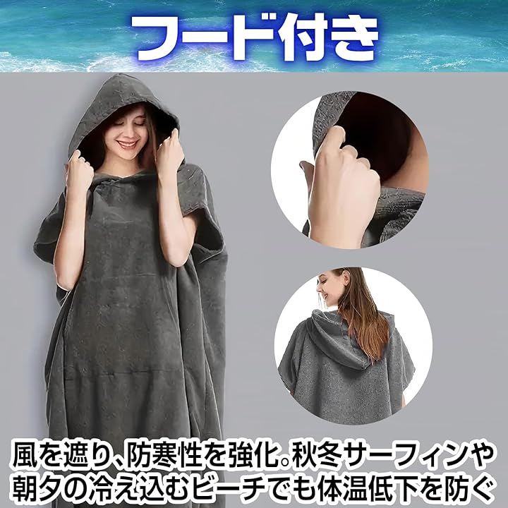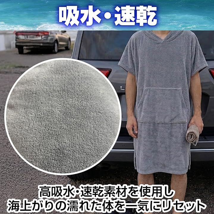 「吸水 速乾 ポンチョ」 高吸水・速乾素材を使用し、海上がりの濡れた体を一気にリセット。