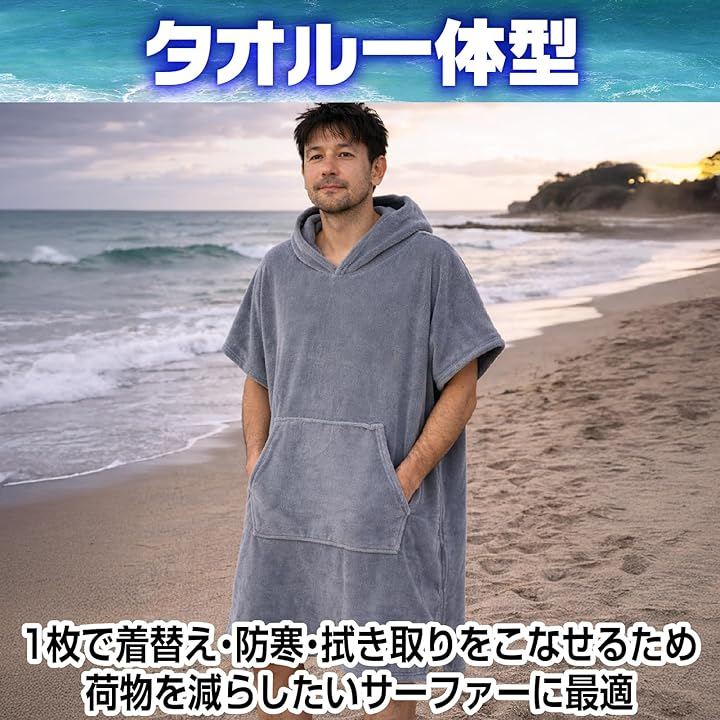 1枚で着替え・防寒・拭き取りをこなせるため、荷物を減らしたいサーファーに最適。