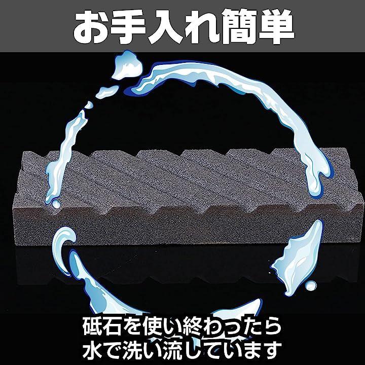 「商品仕様」カラー:ブラック 材質:炭化ケイ素 サイズ: 180x60x27ミリ 重さ 約480g 粒度:#320 *モニターの環境により、色の見え方に若干差が生じる場合がございます。