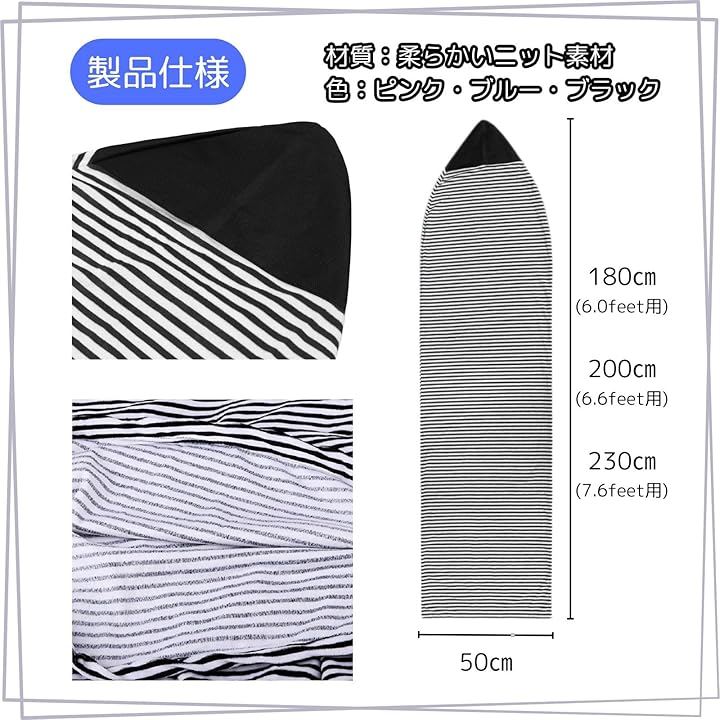 「製品仕様」サイズ200cmx50cm(6'6フィート用) 色:ピンク・ブルー・ブラック 材質:柔らかいニット素材