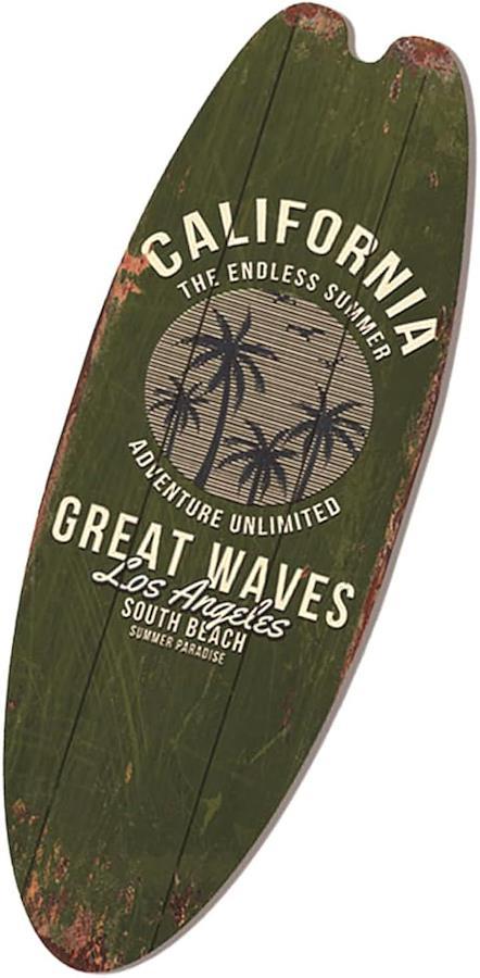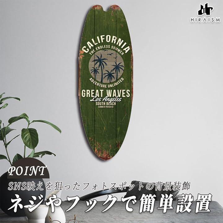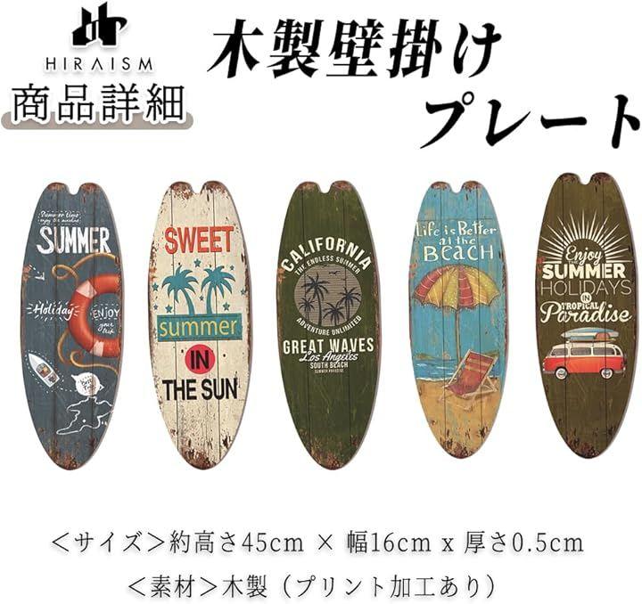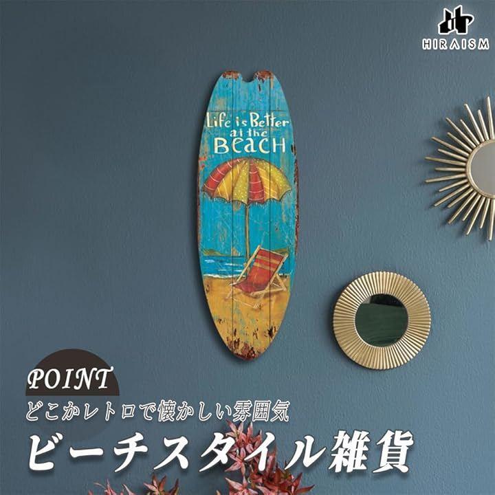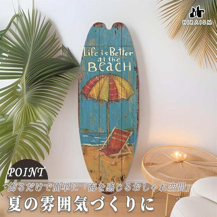 「夏の空気を感じる木製壁掛けプレート」ビーチリゾートを思わせる色使いとサーフボード型のフォルムが、空間に開放感とリラックスを演出する木製壁掛けプレートです。