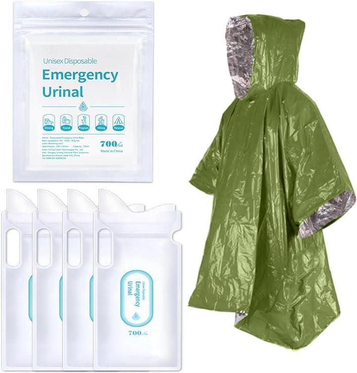 サバイバルシートポンチョと携帯トイレ小便用のセットです。