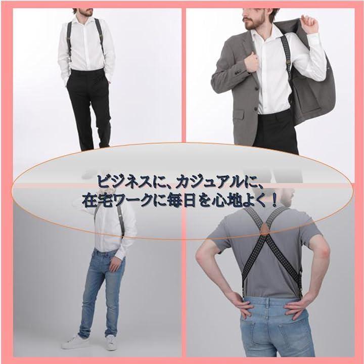 「姿勢改善」通常のX型やY型のサスペンダーとは異なり、肩だけでなく上半身全体で支えてくれます。