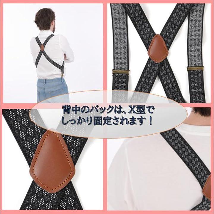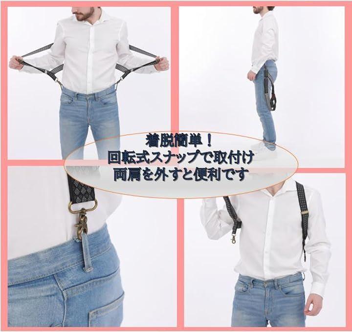 「2点留め、着脱簡単」この商品は、両側の2点留めのホルスター型サスペンダーなので着脱が簡単、トイレの時も楽に脱げます。